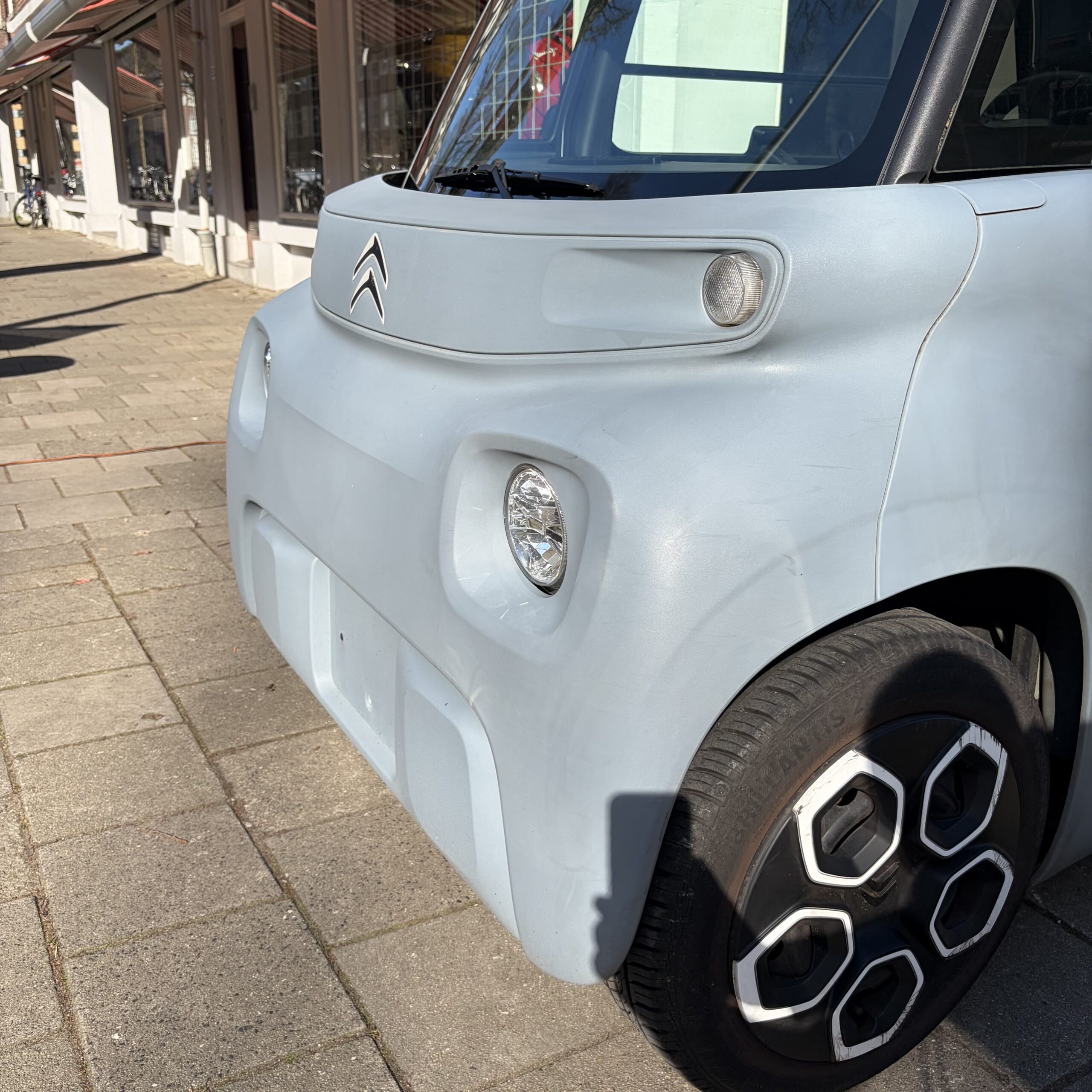 Deze Citroen Ami in de grijze kleur heeft pas 9993 gereden.