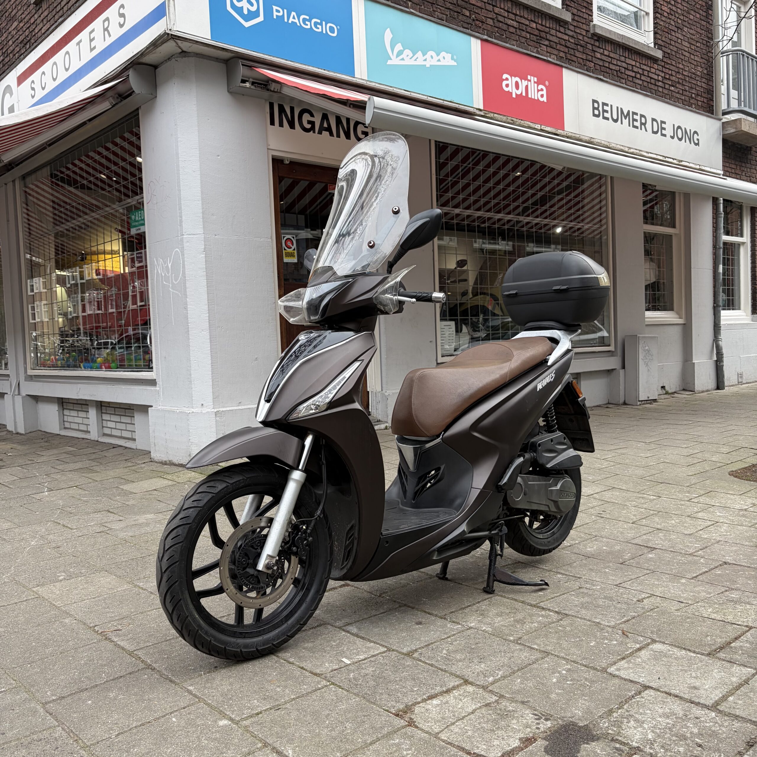 Deze Kymco People’s in de matbruine kleur heeft pas 17175 gereden.