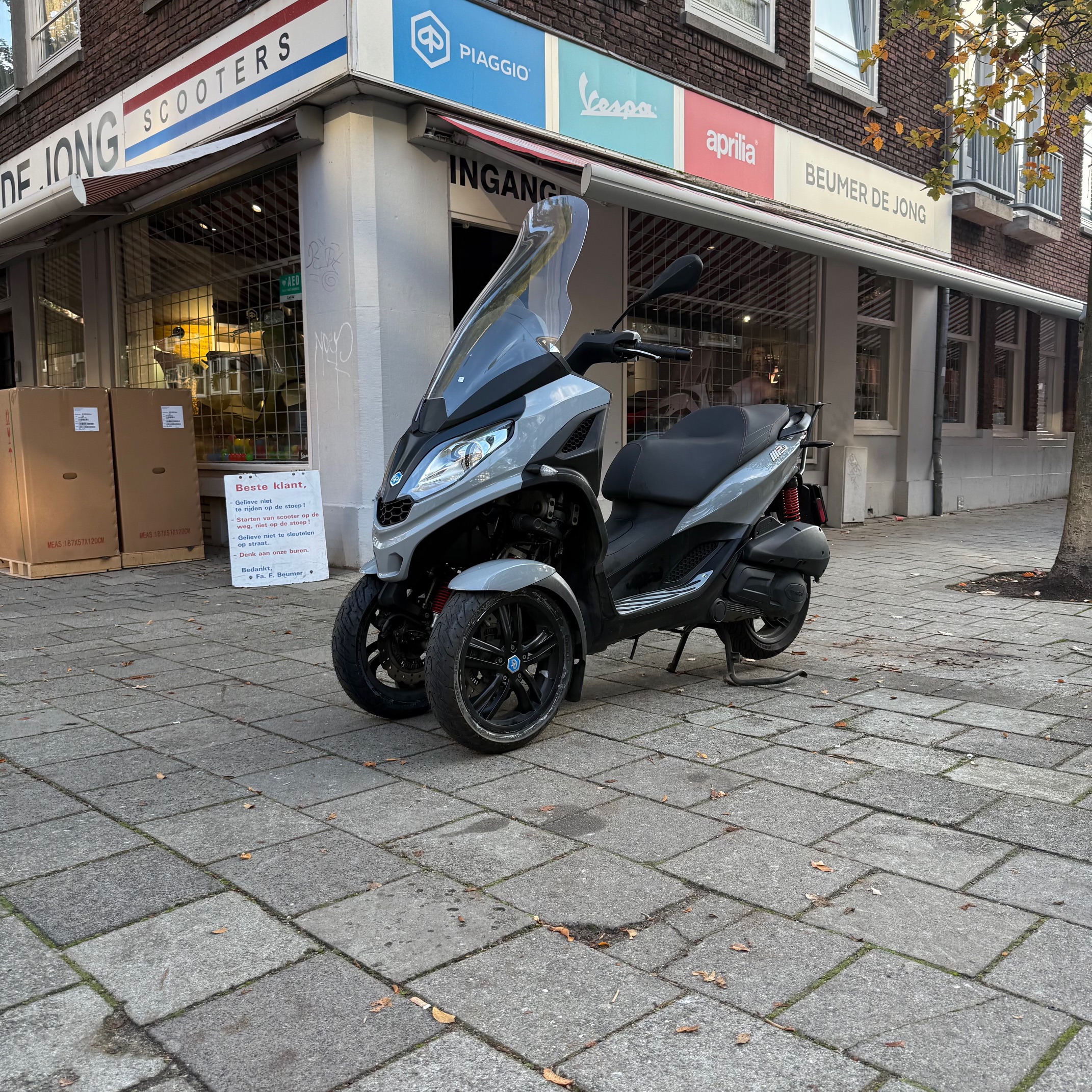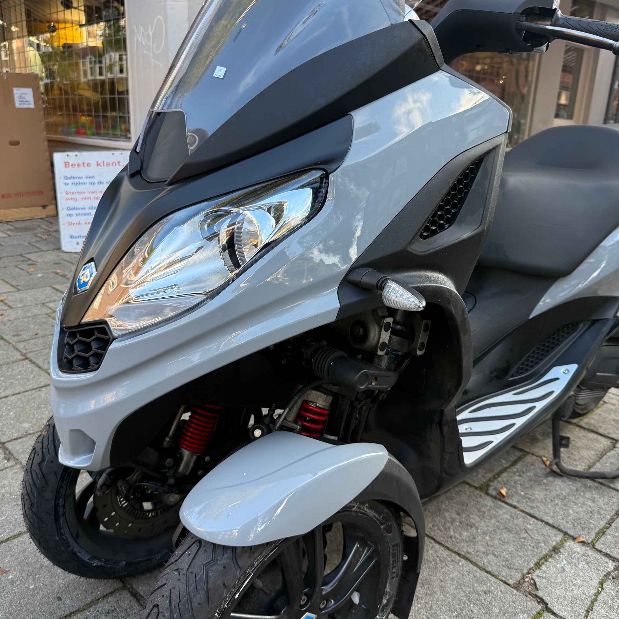 Deze Piaggio MP3 300 in de kleur nardo grey heeft pas 22584 gereden.