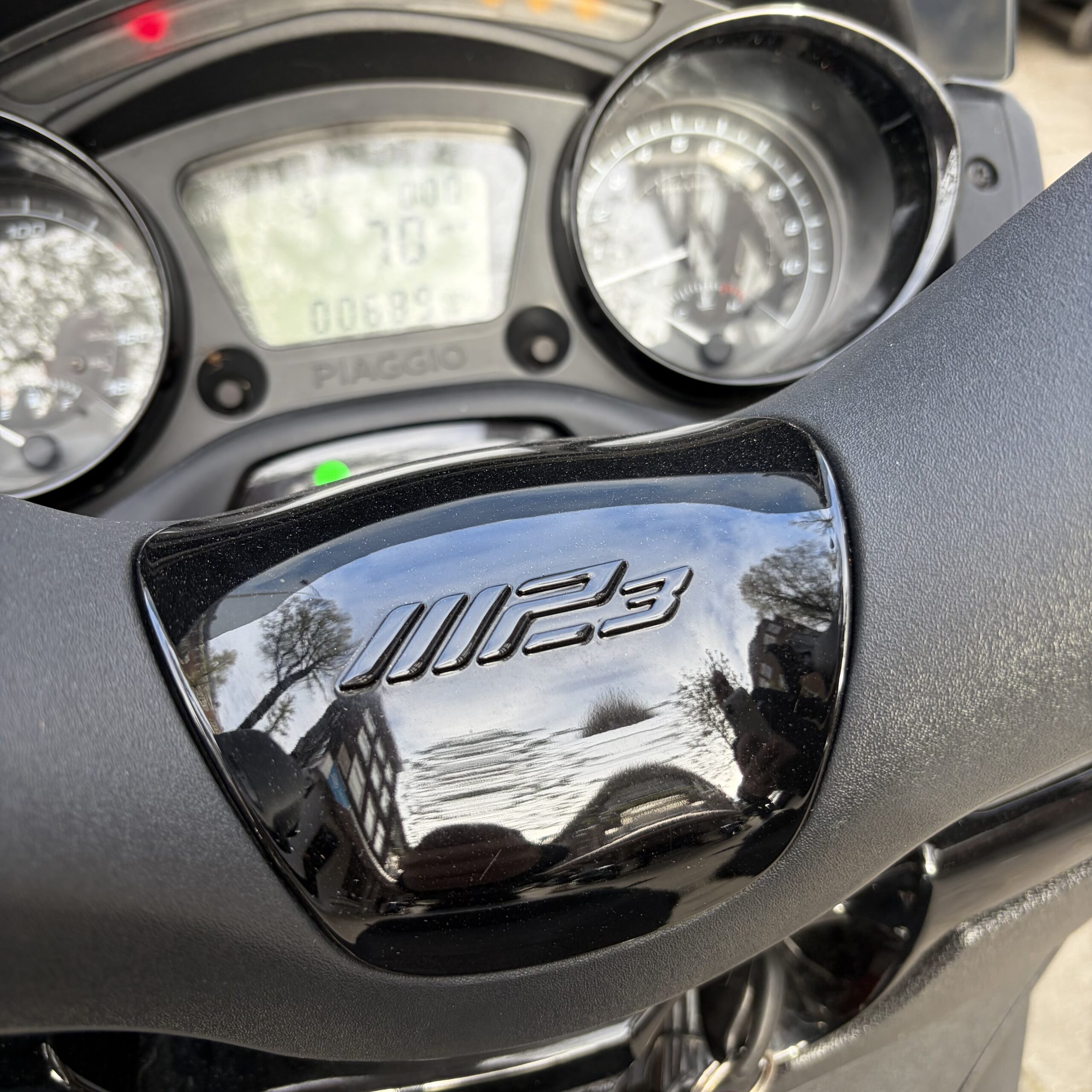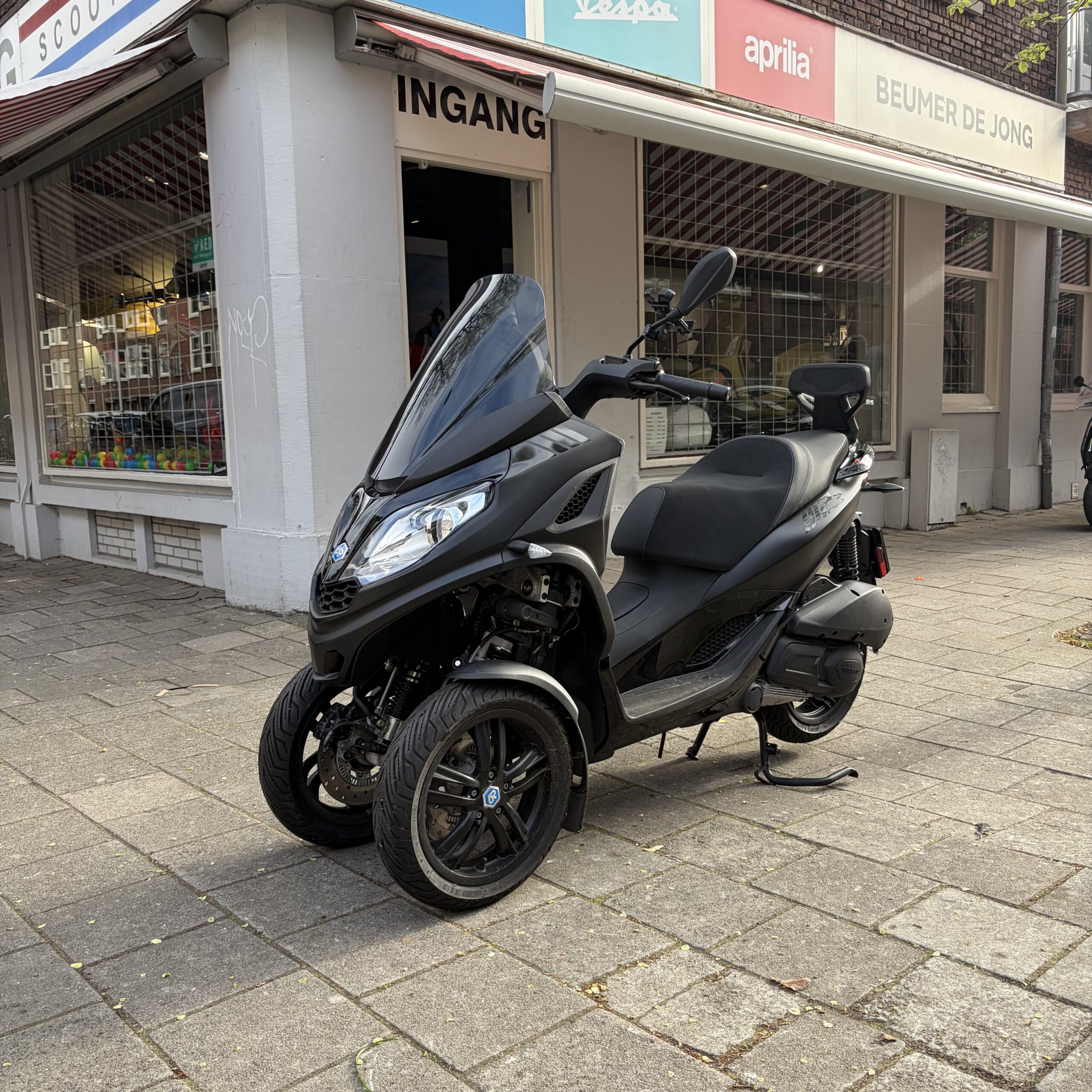 Deze Piaggio MP3 300 Nero Opaco in de matzwarte kleur heeft pas 689 gereden.