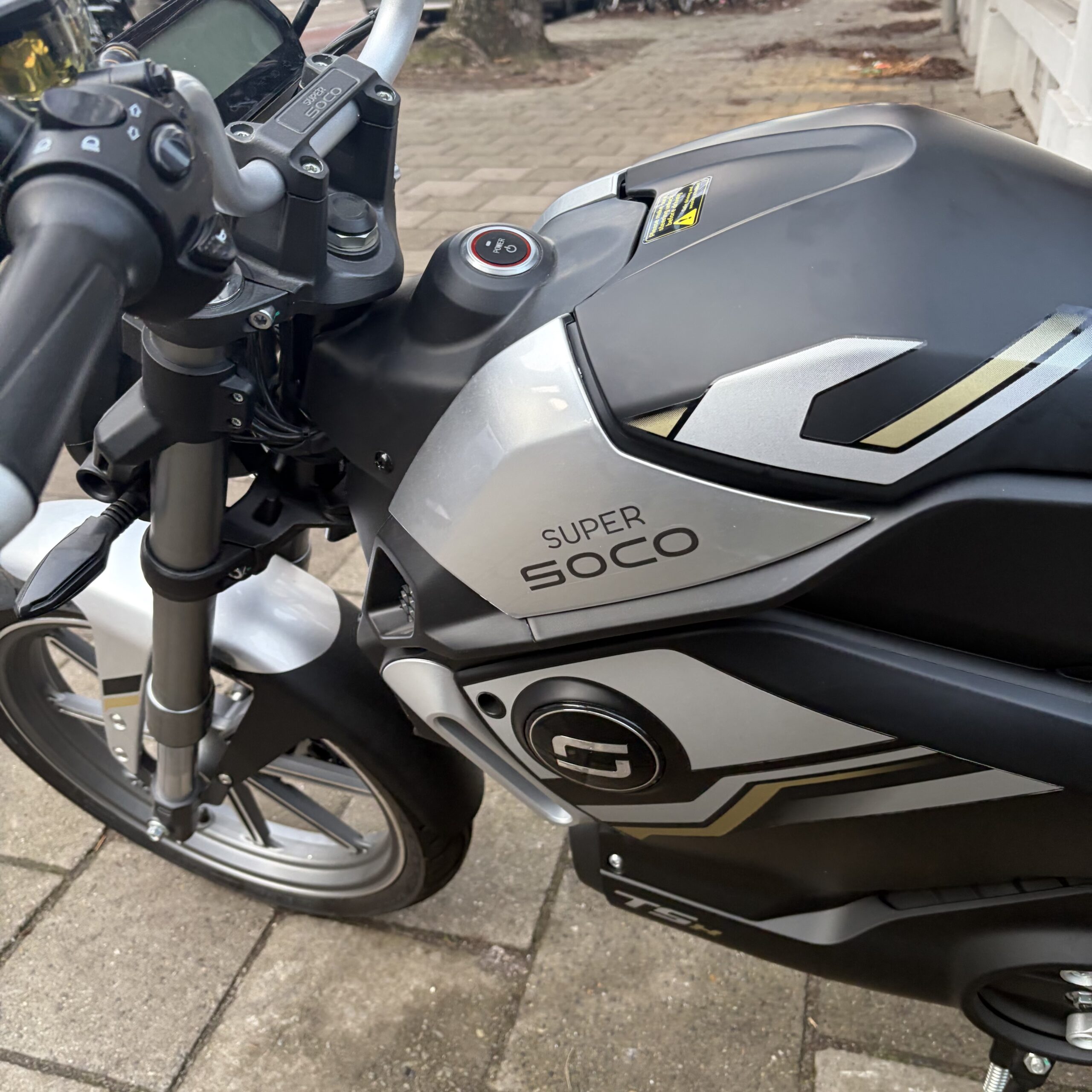 Deze Super Soco TSX in de grijze kleur heeft pas 188 gereden.