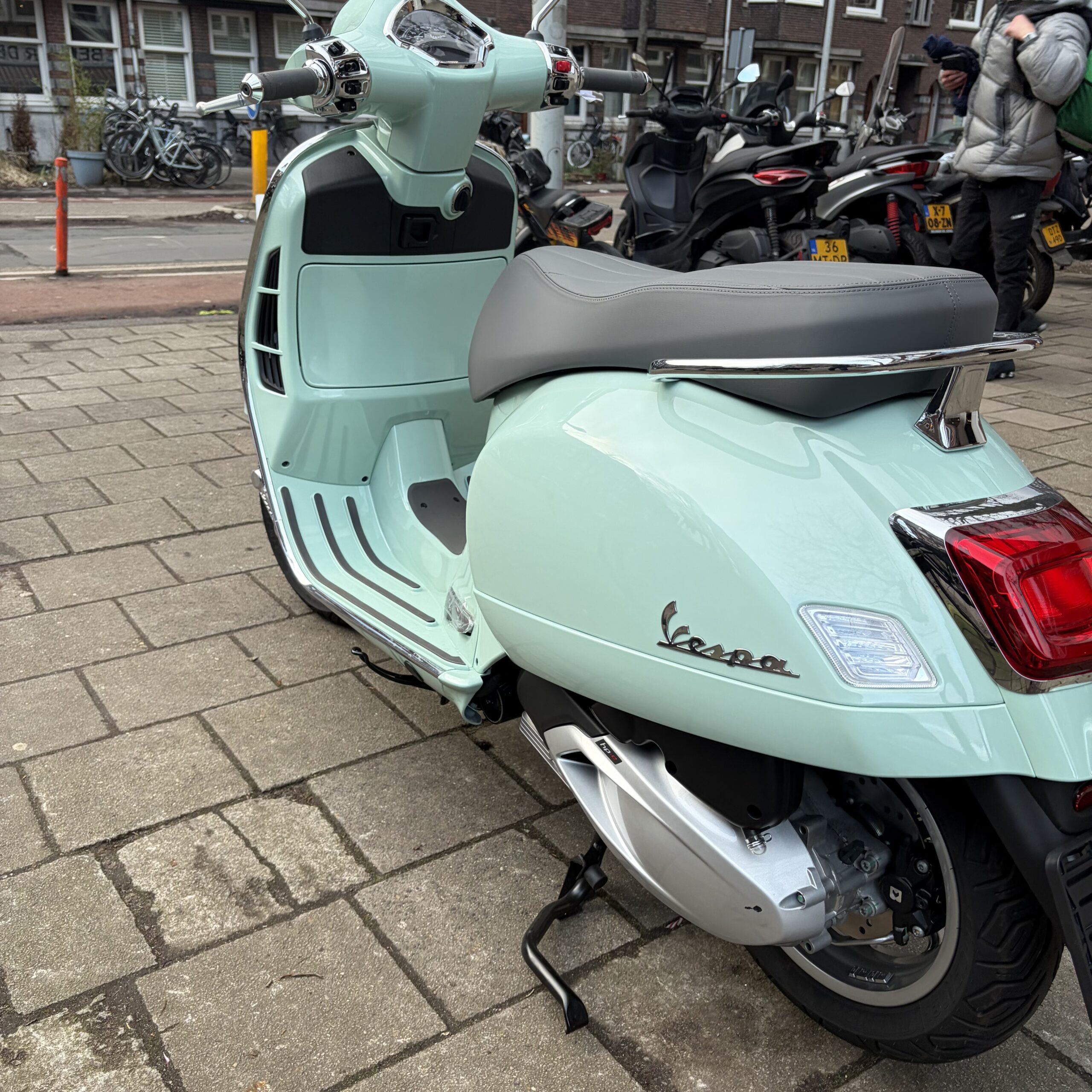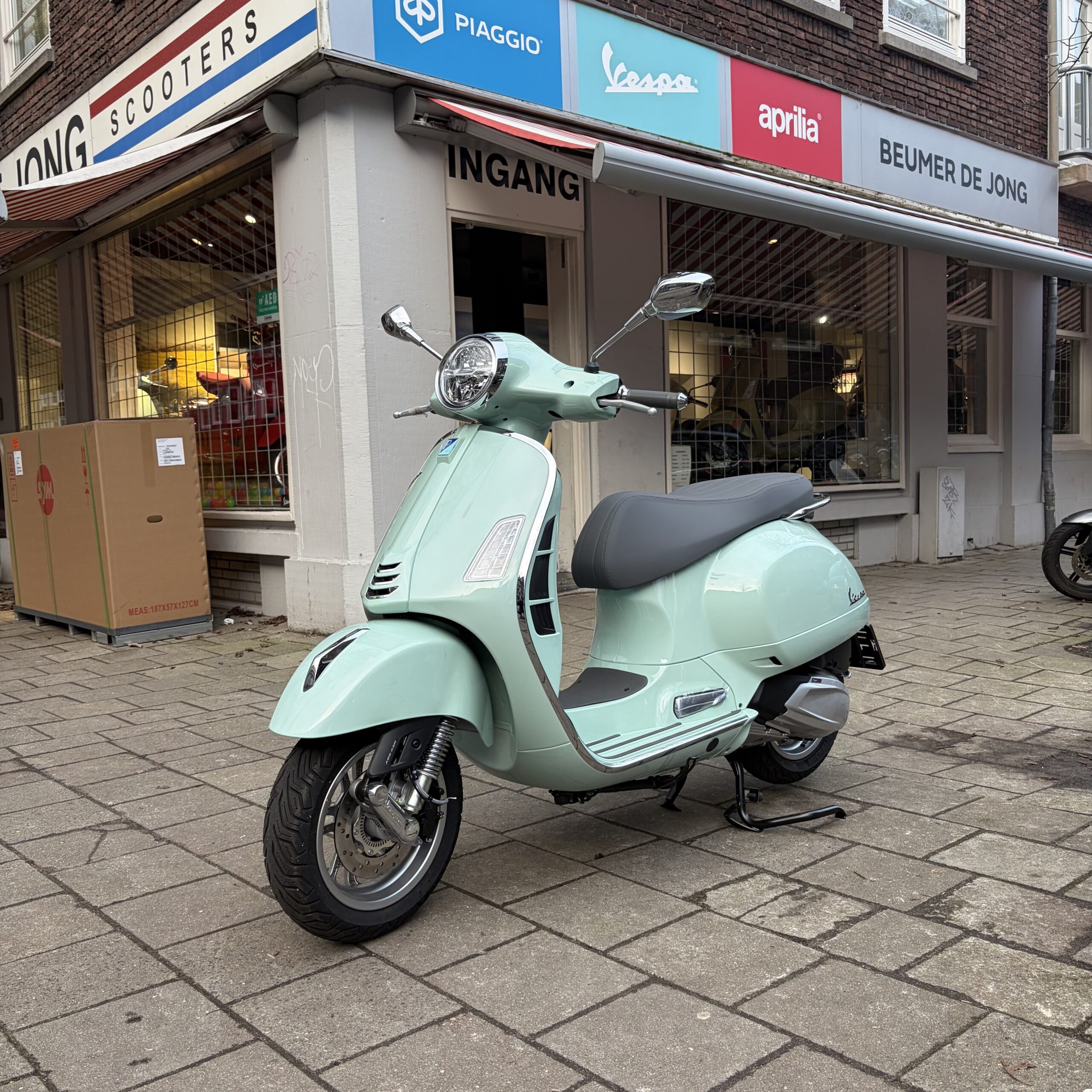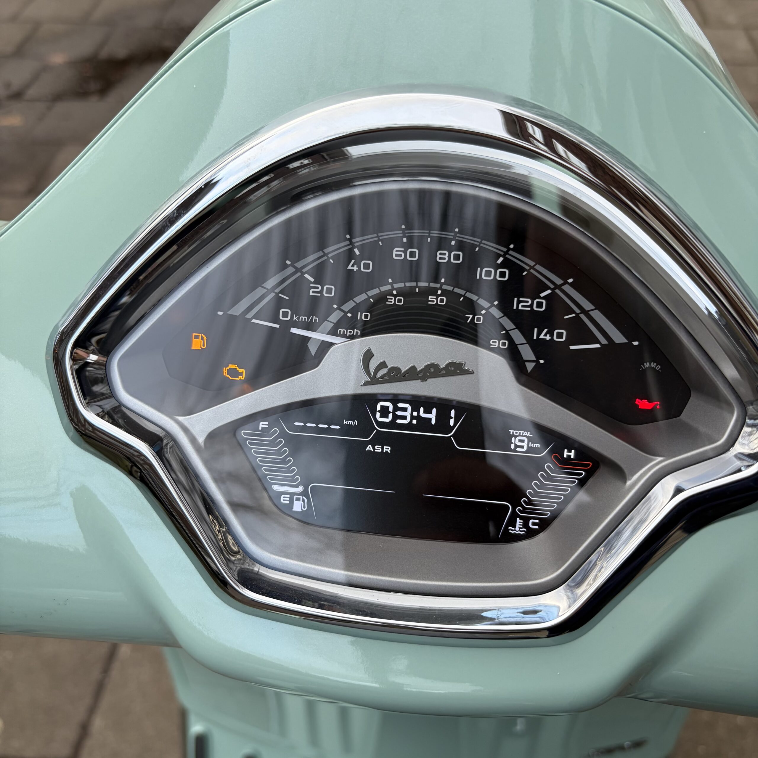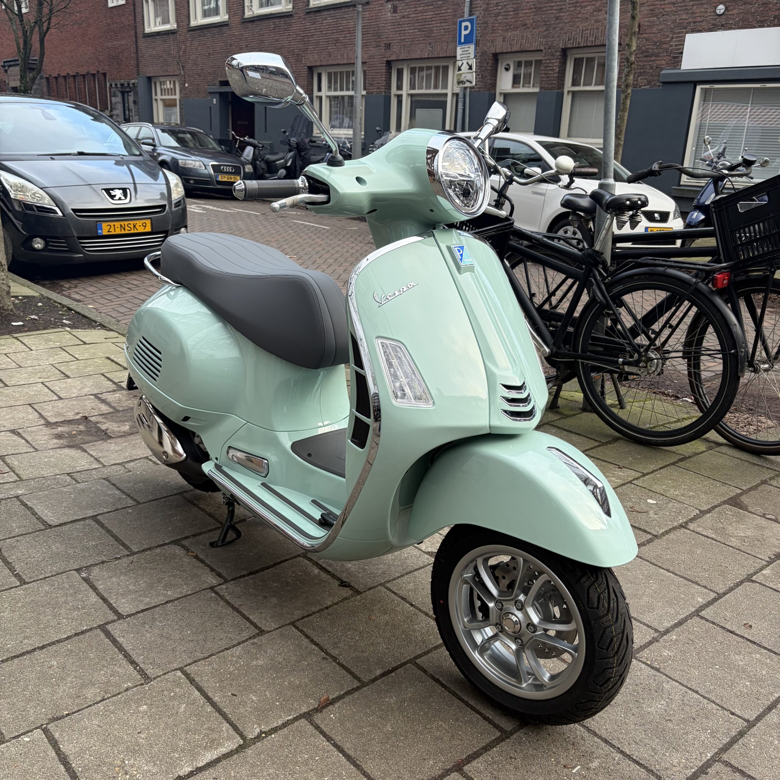 Deze Vespa Vespa in de groene kleur heeft pas 19 gereden.