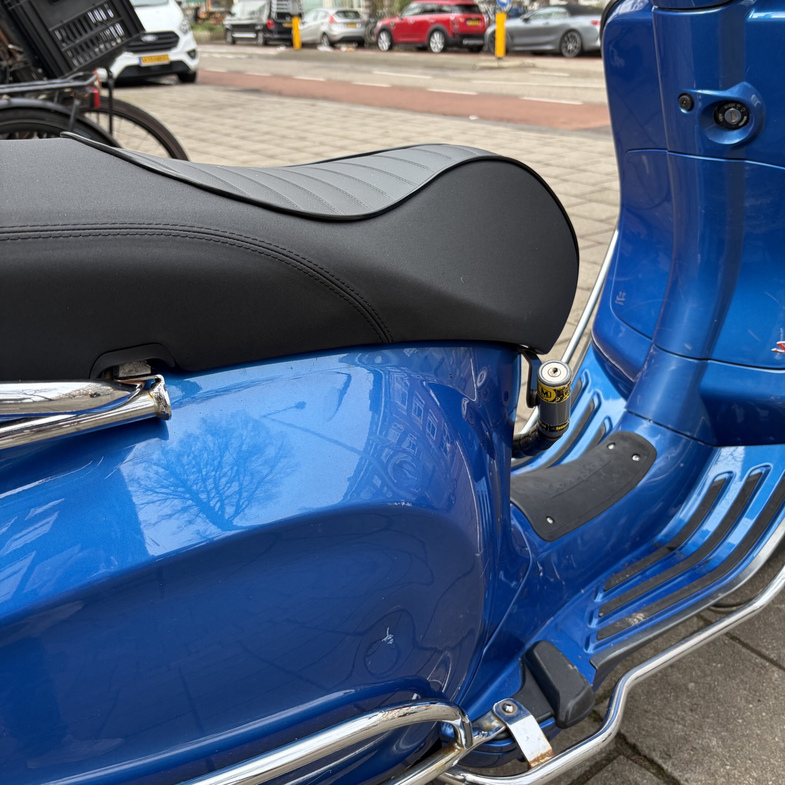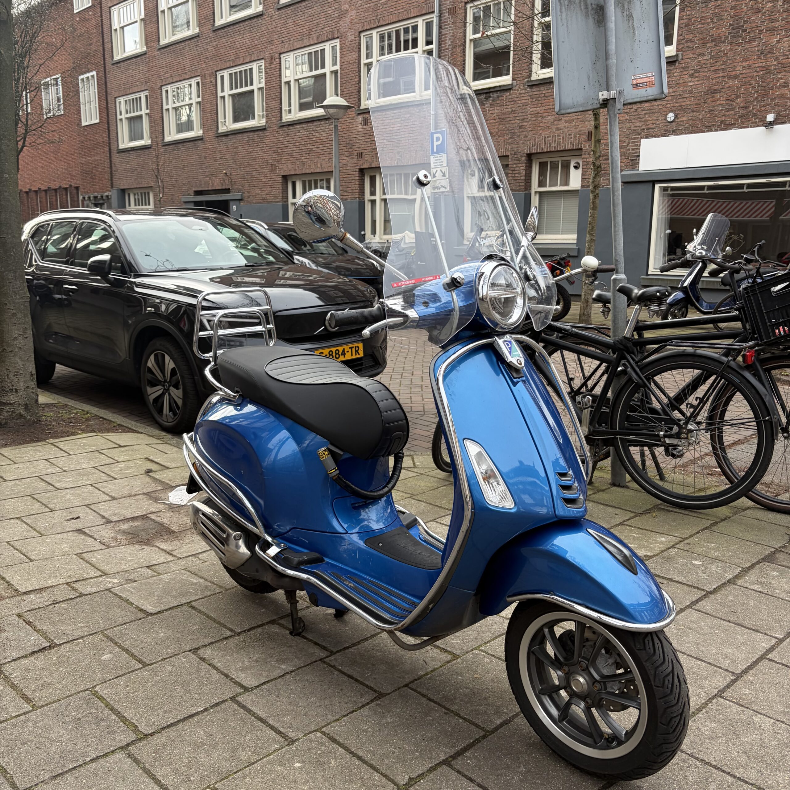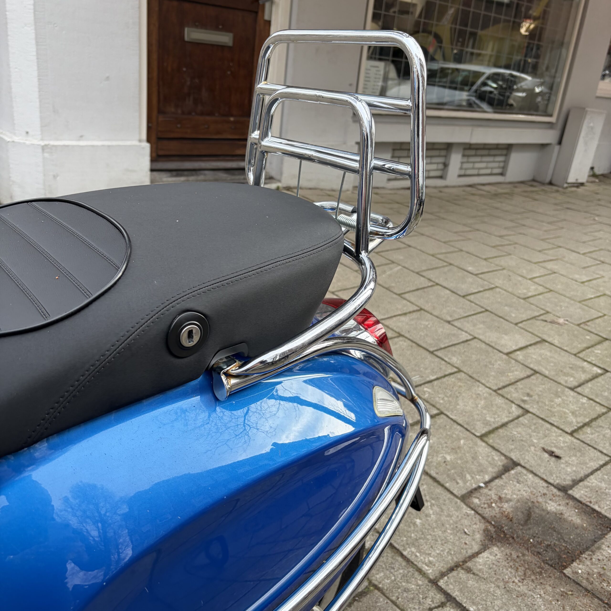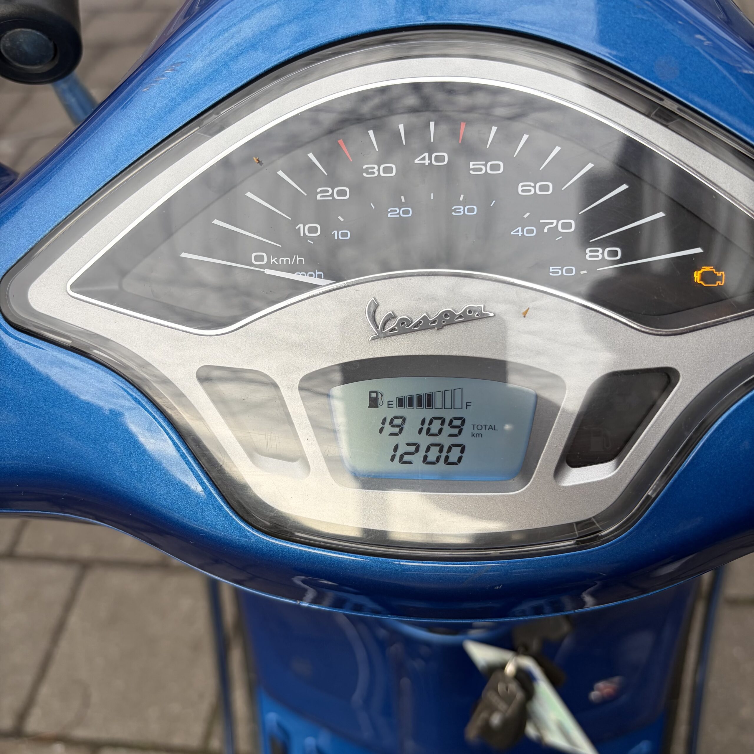 Deze Vespa Primavera in de blauwe kleur heeft pas 19109 gereden.