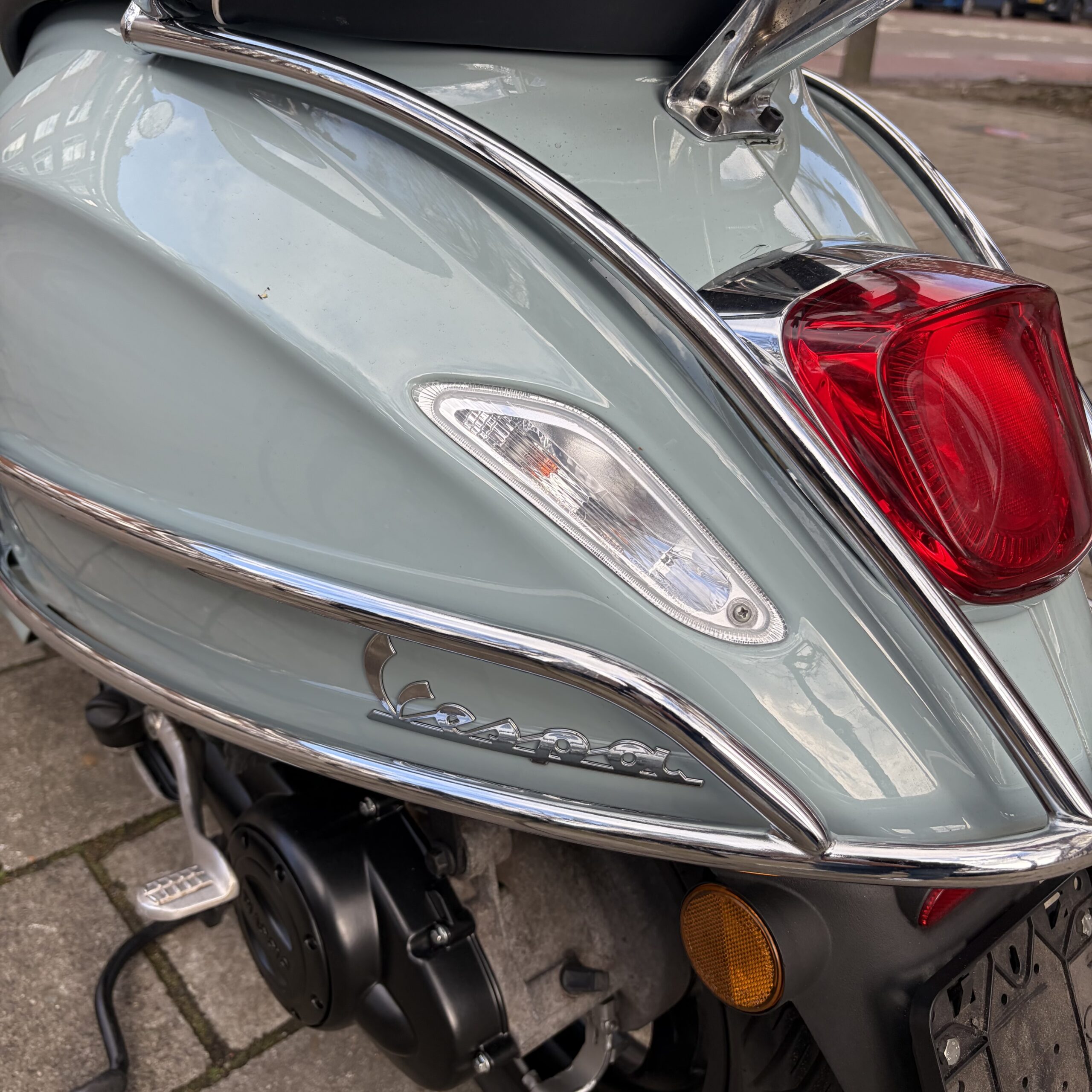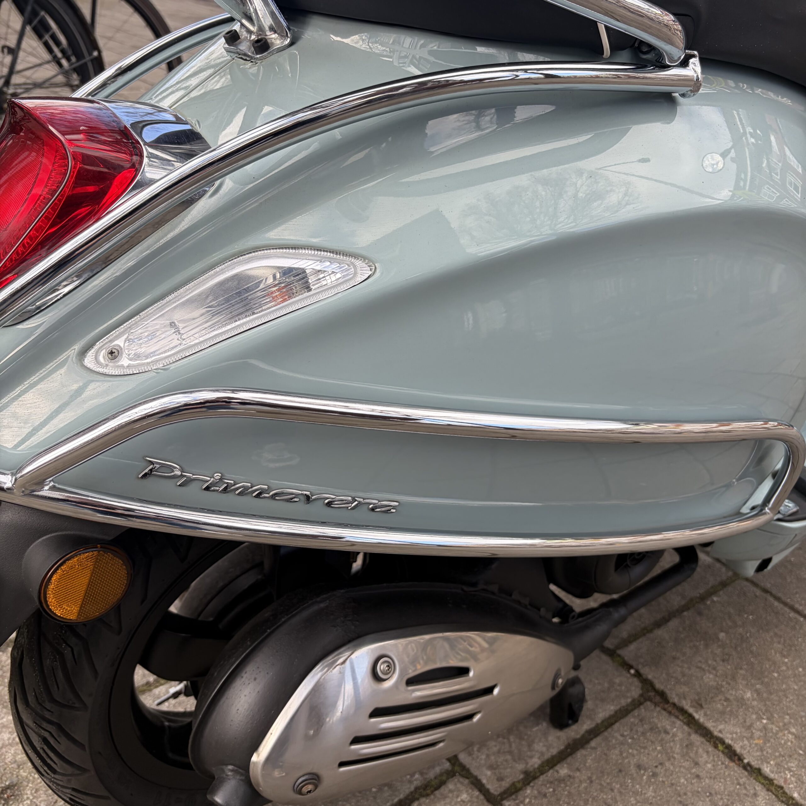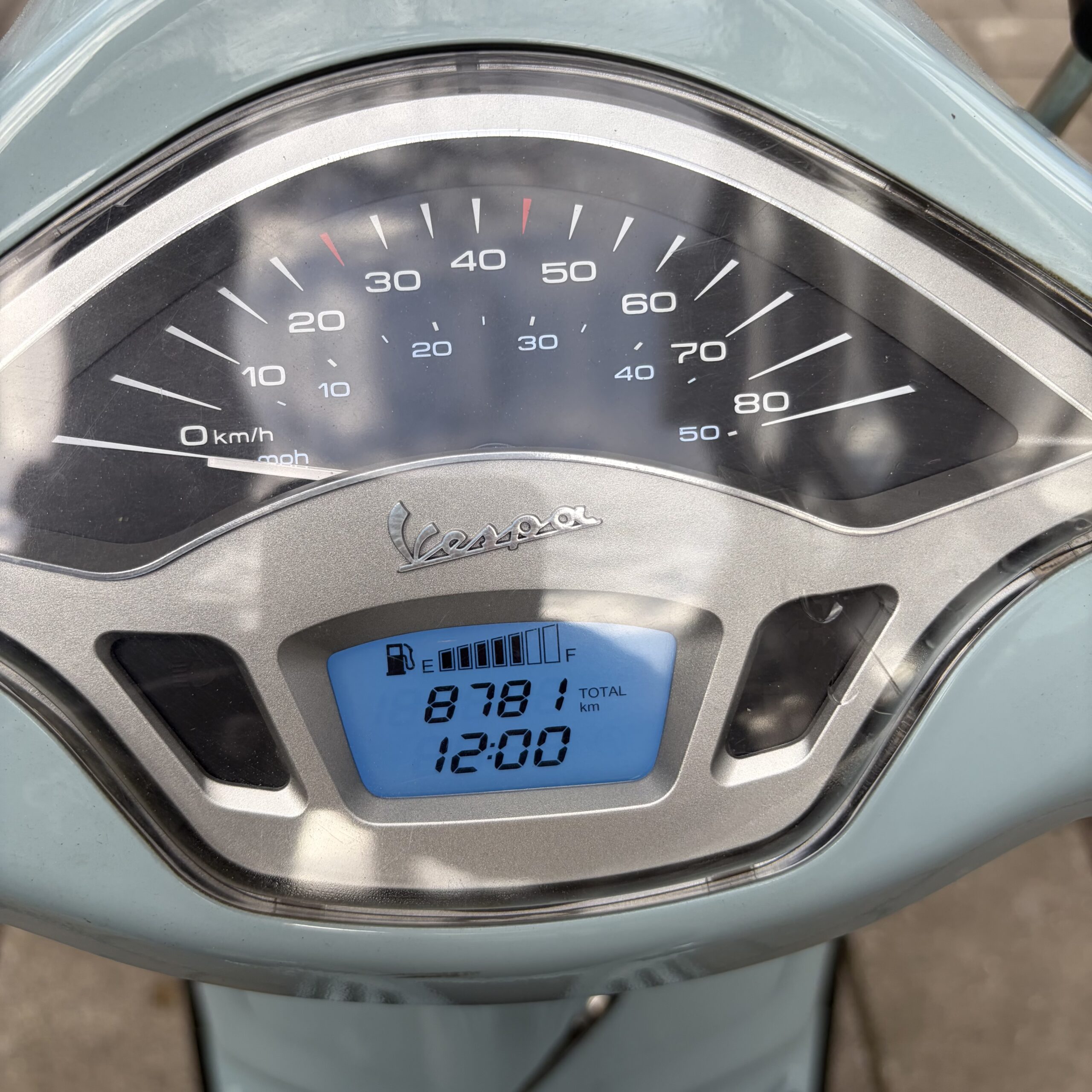 Deze Vespa Primavera in de ice blauwe kleur heeft pas 8781 gereden.