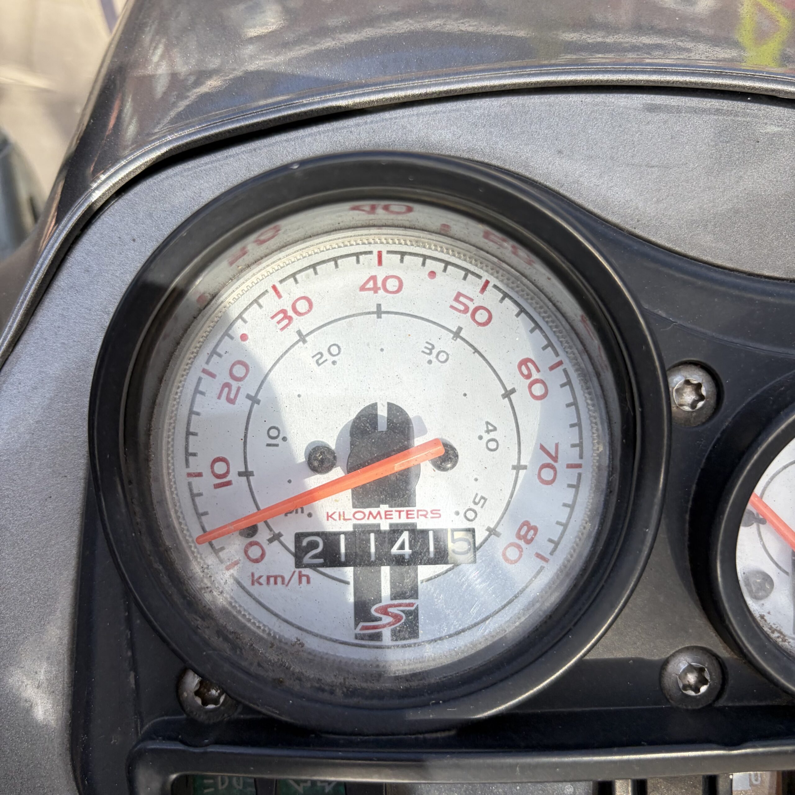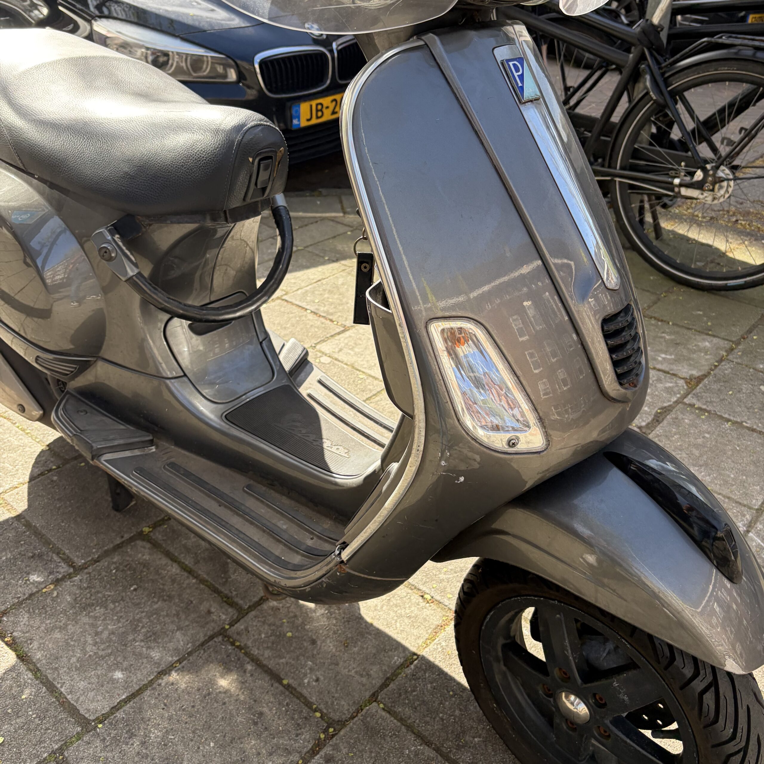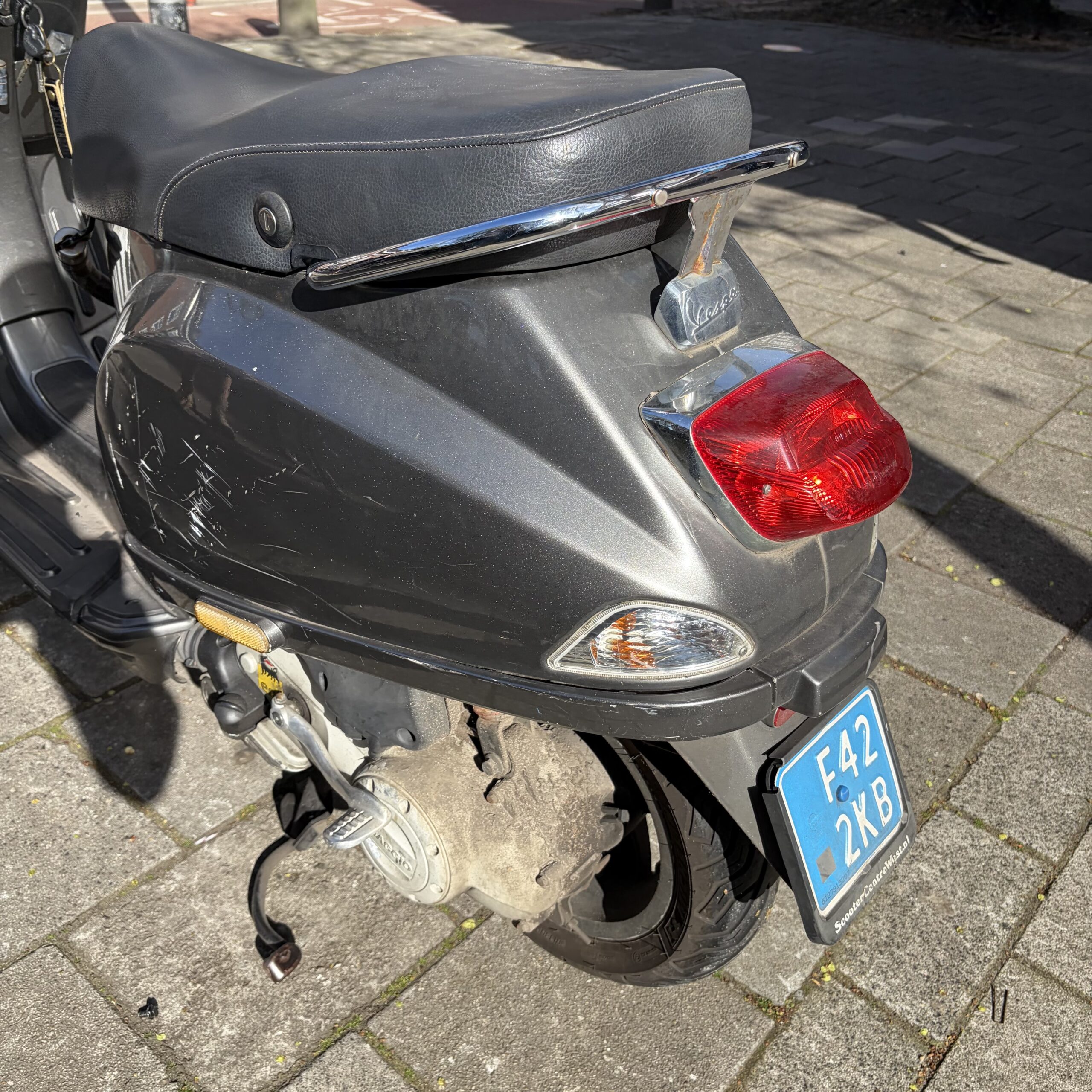 Deze Vespa S in de grijze kleur heeft pas 21141 gereden.