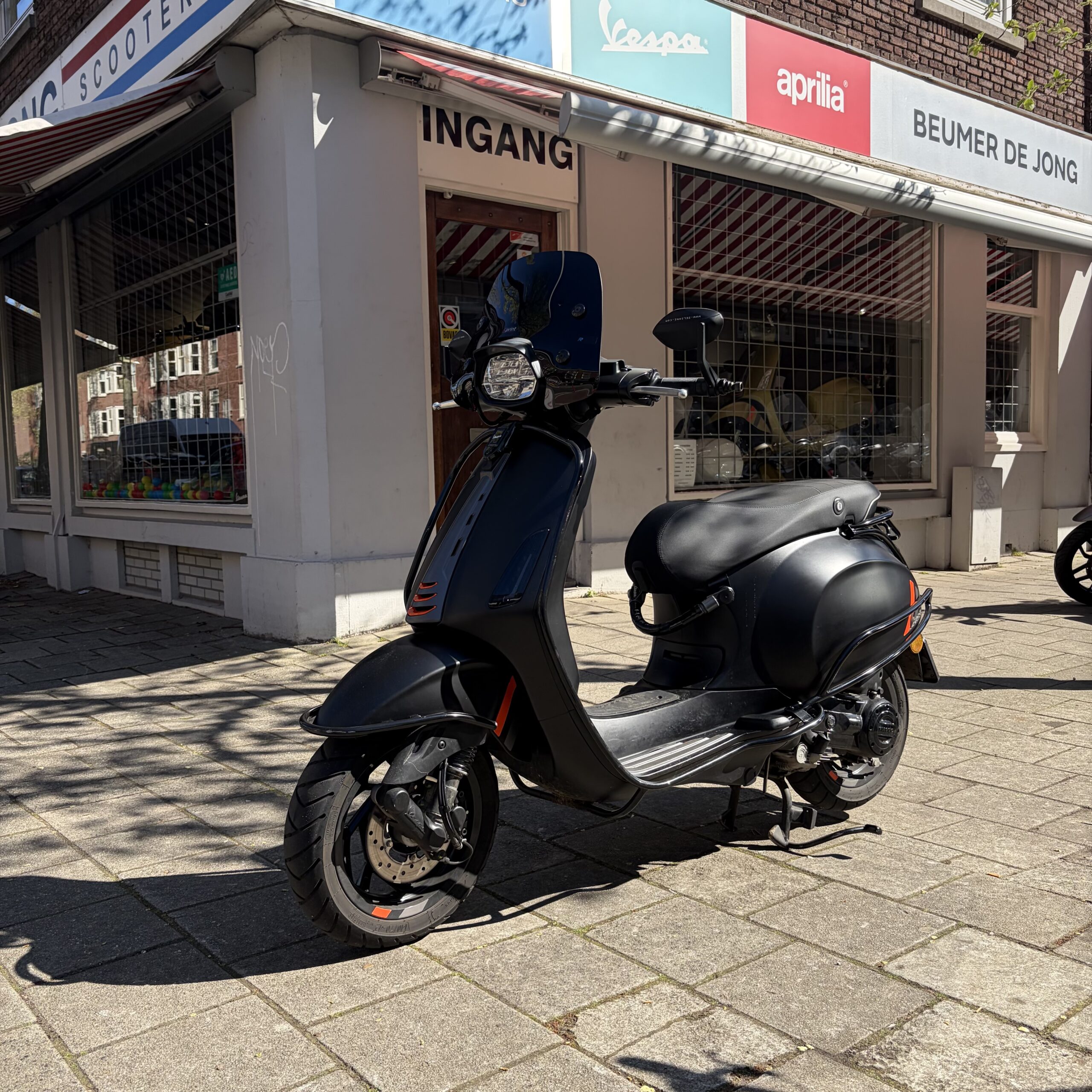 Deze Vespa Sprint FL in de matzwarte kleur heeft pas 3518 gereden.