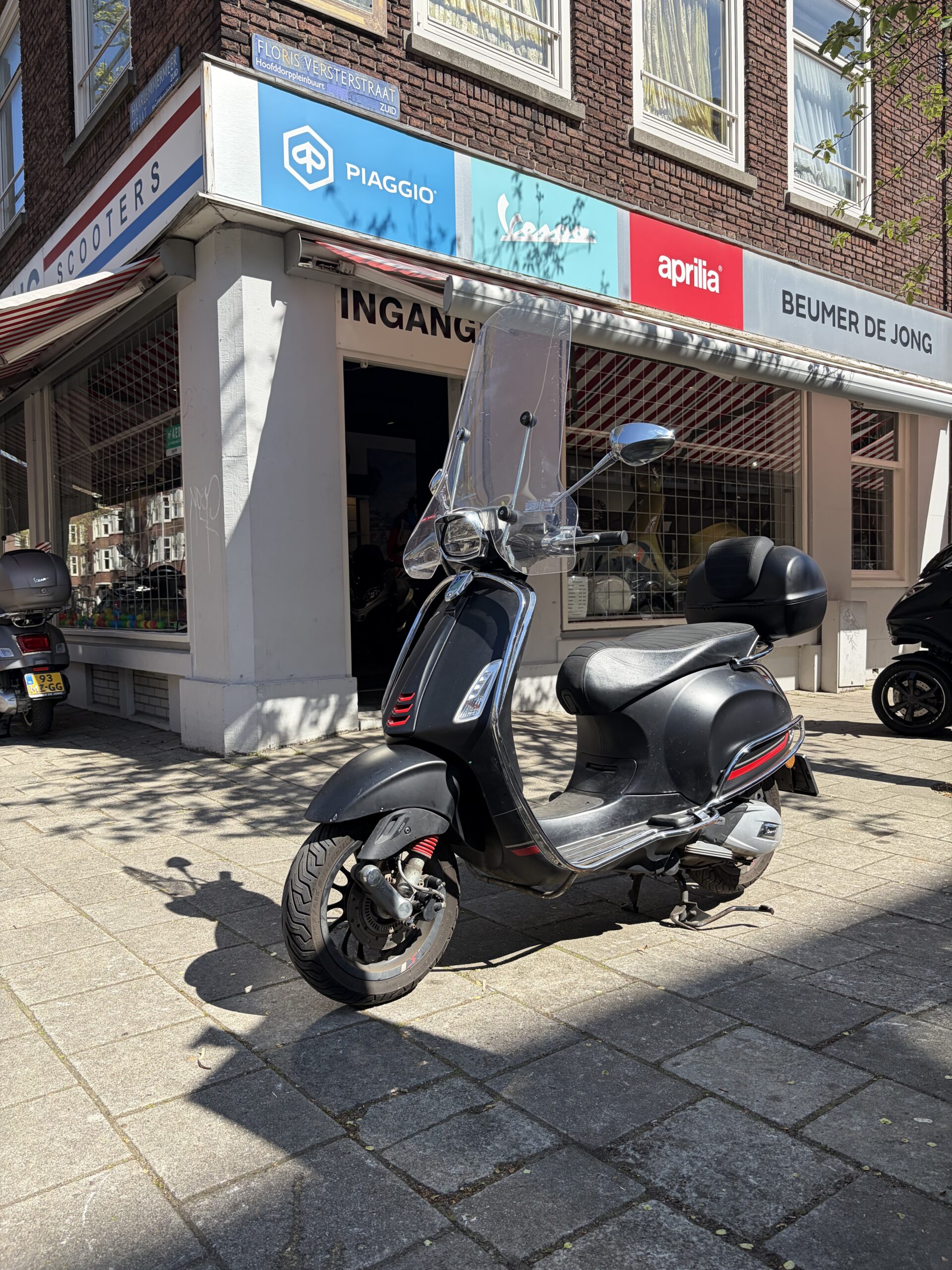 Deze Vespa Sprint S in de matzwarte kleur heeft pas 20224 gereden.